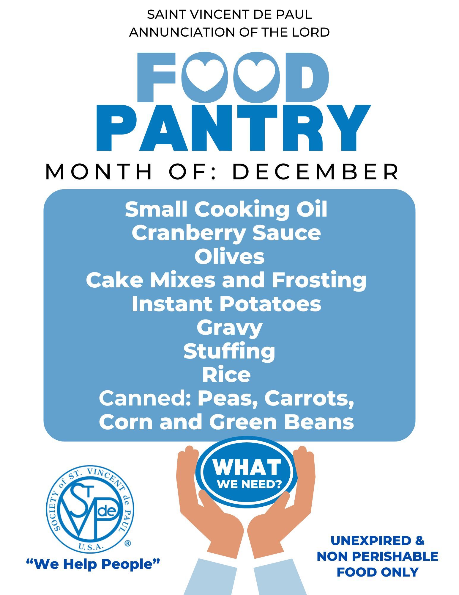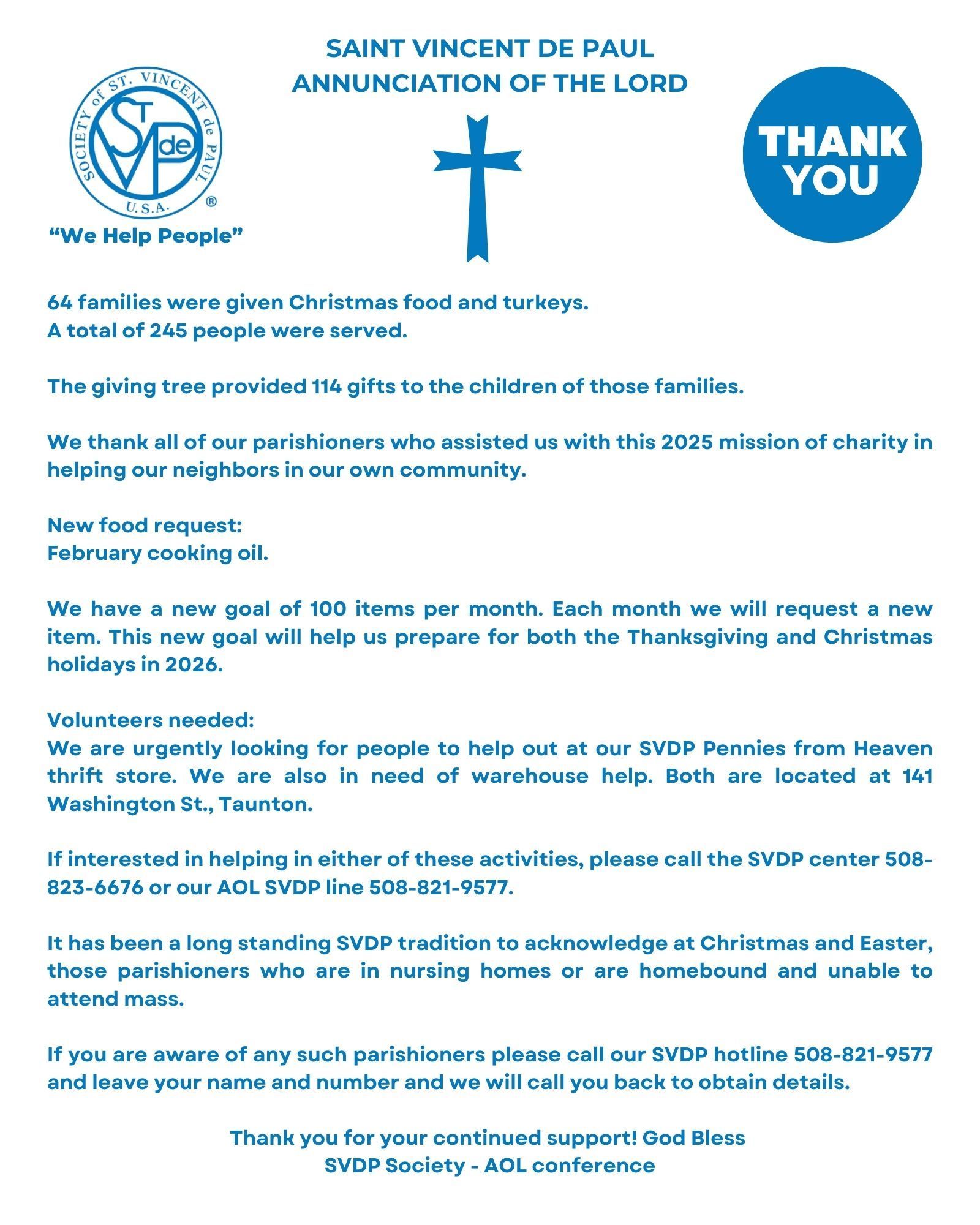 The SVDP Society is looking for new members especially those who have available daytime or evening hours.